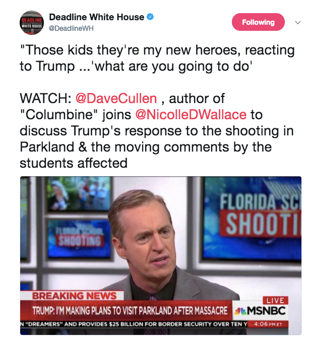I'm running like crazy, on my way to Parkland, Florida, but here are some links to some of the media I did the past few awful days: